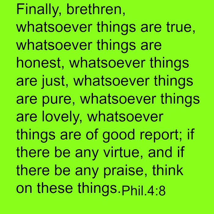 ‘Whatsoever things are pure, whatsoever things are true, whatsoever things are honest….if there is virtue or praise think on those things’. Phill 4:8